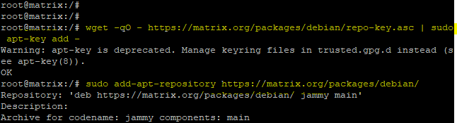 wget -qO - https://matrix.org/packages/debian/repo-key.asc | sudo apt-key add -