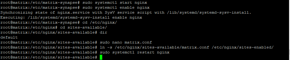 ln -s /etc/nginx/sites-available/matrix /etc/nginx/sites-enabled/